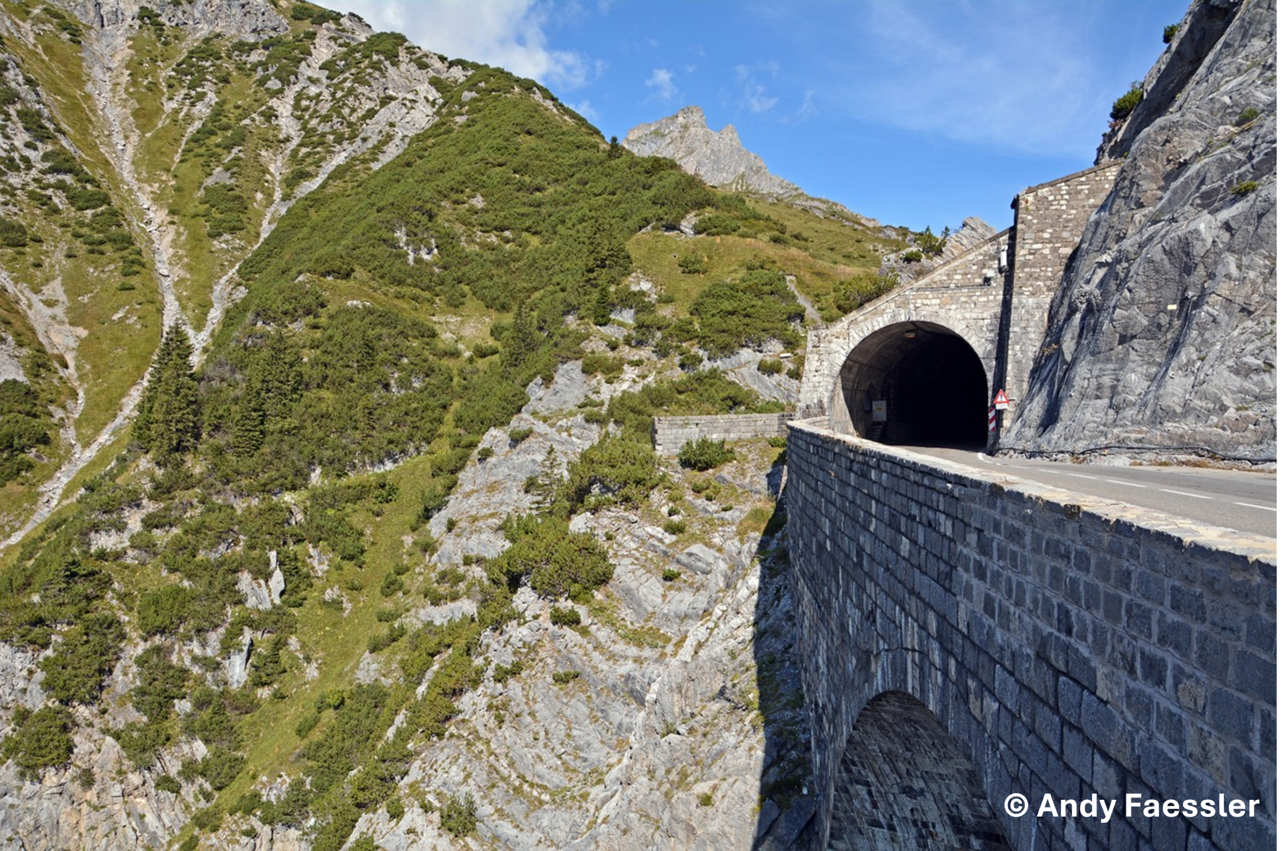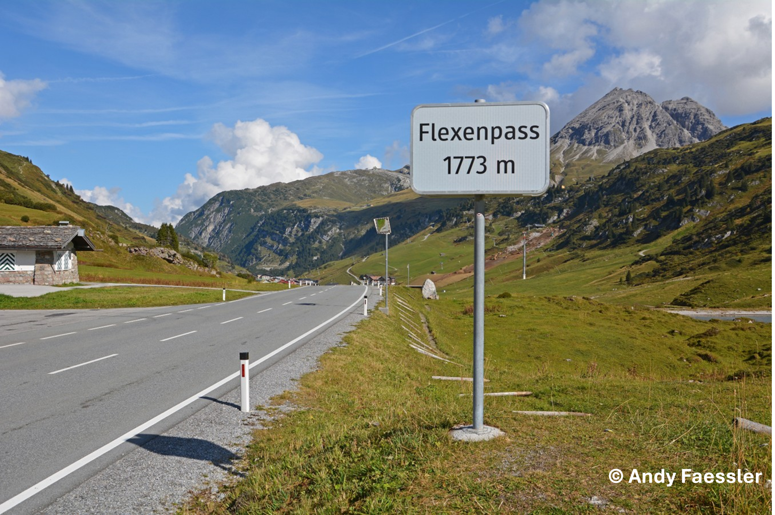 Kurz darauf erreichen wir bereits den Arlbergpass. Die Passstrasse beginnt auf Tiroler Seite und führt in sanften, aber stetigen Kurven hinauf in die hochalpine Landschaft. Je höher man kommt, desto klarer wird das Panorama: felsige Gipfel, weite Almflächen und das typische, kühle Berglicht, das den Arlberg so besonders macht. Nach der Abfahrt erreichen wir den Flexenpass, der uns durch Nadelwälder und Almwiesen in Richtung Vorarlberg führt. Unser letzter Höhepunkt ist der Hochtannbergpass. Eingebettet in grüne Alpwiesen und schroffe Gipfel bietet er weitgezogene Kurven und grossartige Ausblicke, ein perfekter Abschluss unserer Passfahrten. Schliesslich verlassen wir die Bergwelt und fahren via Dornbirn – St. Gallen zurück zu den Einsteigeorten.