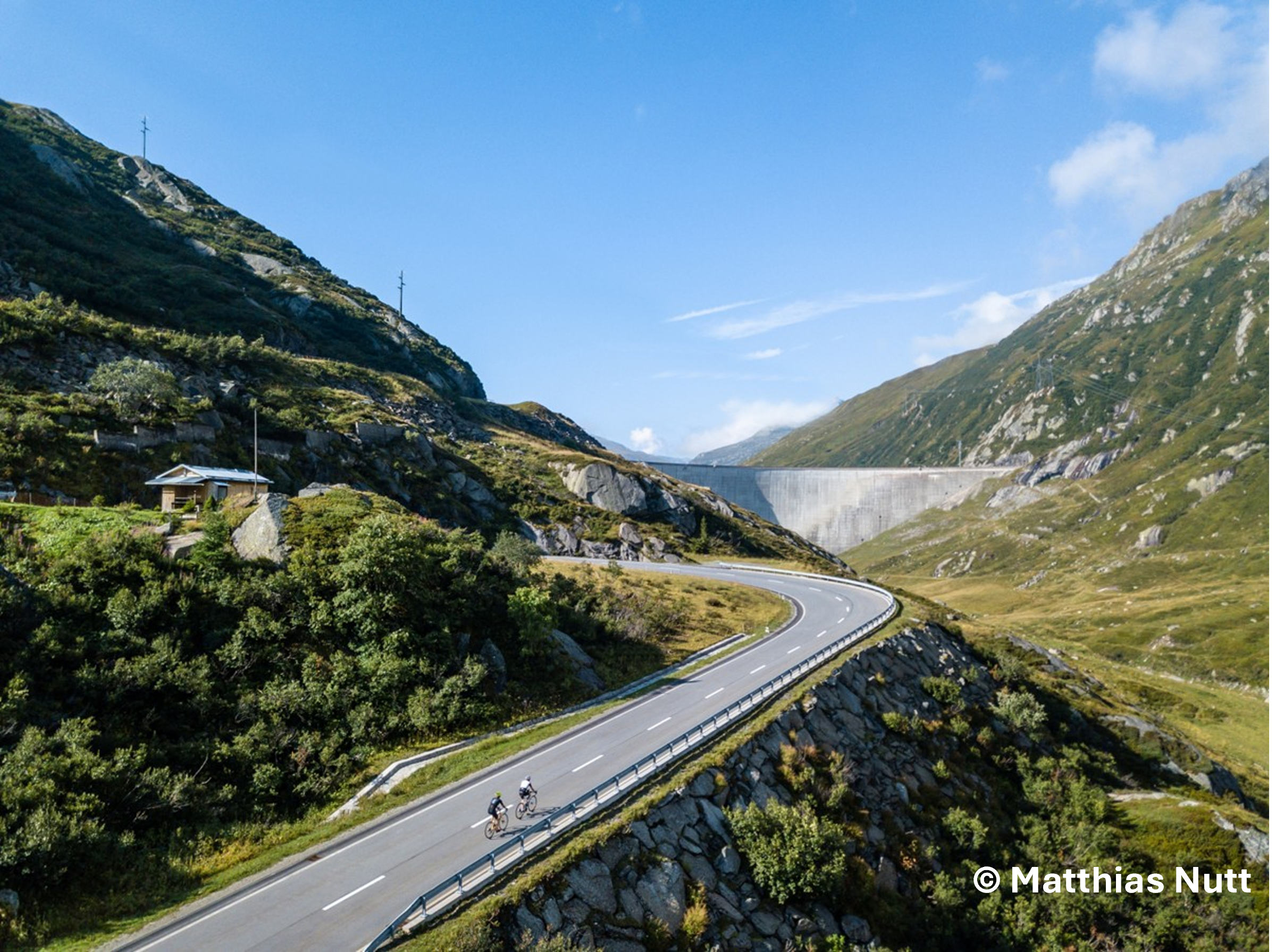 Früh am Morgen fahren wir ab den Einsteigeorten ab und starten unser Alpenabenteuer. Über Luzern gelangen wir in die Zentralschweiz, wo sich die Bergwelt stetig öffnet. Ab Andermatt beginnt der erste grosse Anstieg zum Oberalppass. In weiten Kurven gewinnen wir Höhe und bald liegt das Tal weit unter uns. Auf 2046 Metern erreichen wir die Passhöhe mit dem kleinen, roten Leuchtturm. Der Leuchtturm ist ein Symbol für die Verbindung zwischen den beiden Enden des Rheins – der Quelle am Oberalppass und der Mündung in Rotterdam.