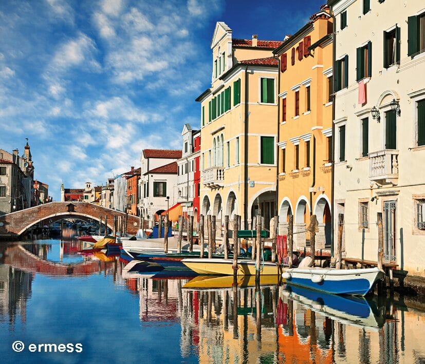 Unsere letzte Radtour führt uns überwiegend entlang des Flusslaufes des Bacchiglione Richtung Adria. Die Strecke ist überwiegend flach und führt an kleinen Dörfern und weiten Feldern vorbei. Die Landschaft verändert sich allmählich: Felder weichen Kanälen, Wasserstrassen und Salzwiesen. Kurz vor Chioggia führt der Radwegdurch die typische Lagunenlandschaft Venetos mit Blick auf kleine Fischerhäfen. Unsere heutige Tagestour endet in Chioggia, das auch gern «Klein-Venedig» genannt wird. Dort werden wir vom Car erwartet. Wir verladen die Fahrräder und fahren mit dem Bus zurück zum Hotel.