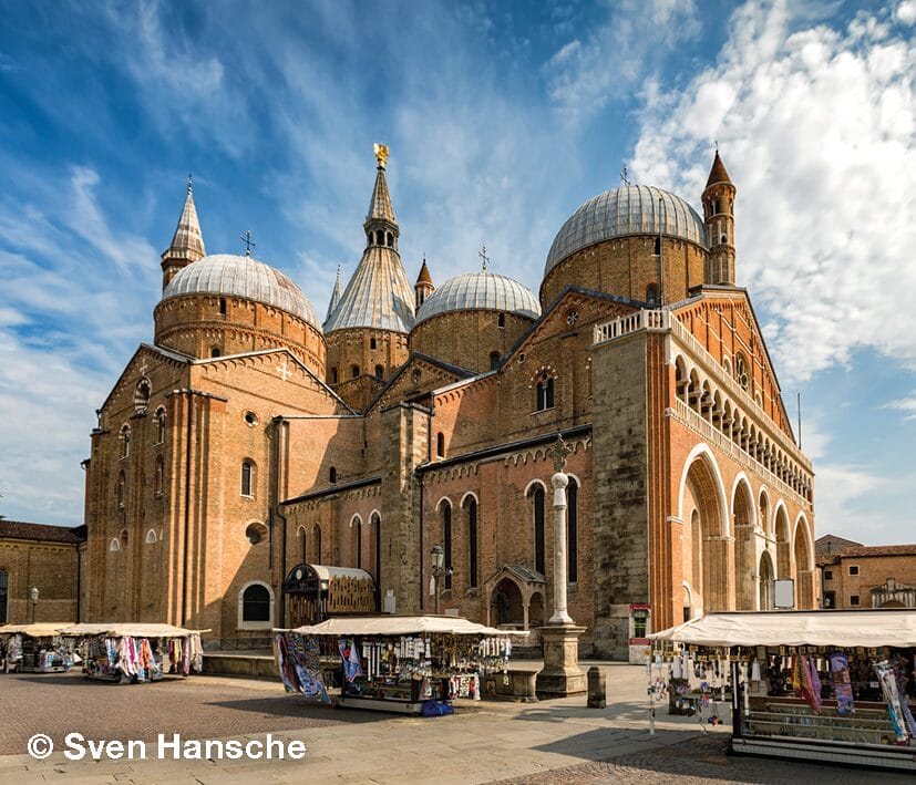 Heute starten wir zu einer lebendigen Städterunde nach Padua. Die ersten Kilometer radeln wir durch Felder und kleine Ortschaften. Der Weg führt uns meistens entlang der Wasserstrassen rund und durch Padua. Die Wasserstrassen bilden ein geniales Geflecht, um die Stadt des heiligen Antonius erkunden zu können. Die grosse Basilika hat die Stadt zu einem weltweit bekannten Wallfahrtsort gemacht. Entdecken wir die Stadt auf unseren Rädern und lassen uns durch die historischen Gassen treiben, vorbei an prachtvollen Plätzen und eindrucksvollen Bauwerken, die Paduas besonderen Charme ausmachen. Auf der Rückfahrt geniessen wir erneut die schöne Landschaft und die kleinen Kanäle der Euganeischen Ebene, bis wir zu unserem Hotel zurückkommen.
