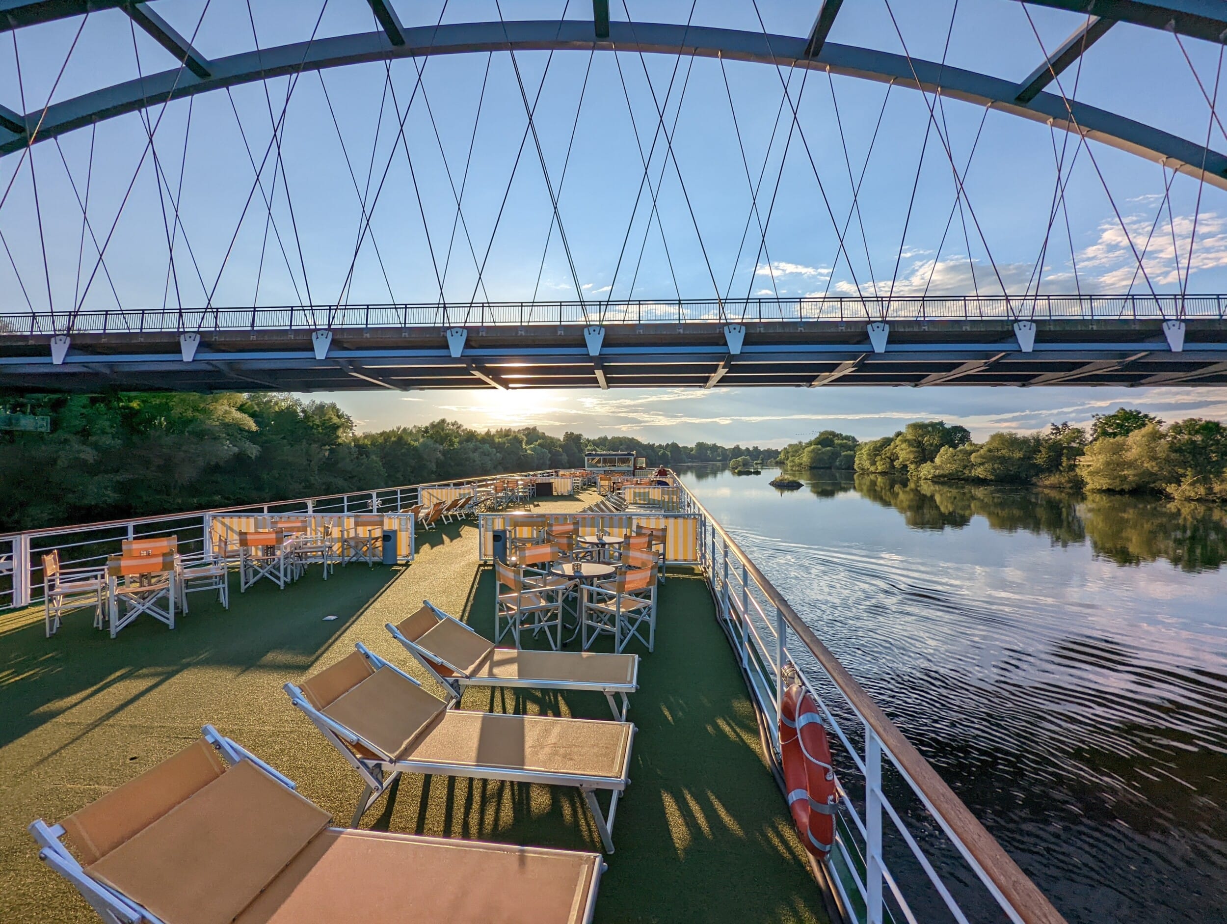 Ein Hauch von Rokoko und ein elegantes Ambiente heissen Sie willkommen an Bord der MS Casanova. Liebevoll gestaltete Details, verspielte Ornamente und Reproduktionen berühmter Gemälde verleihen dem Schiff seinen ganz eigenen Charme. Im stilvollen Restaurant kümmert sich die aufmerksame Crew um Ihr leibliches Wohl. Der grosszügige Panoramasalon mit seinem royalen Flair lädt zum Verweilen ein – ob bei einem Glas Wein, einem Cocktail oder einem gemütlichen Schwatz an der Bar. Wer die Landschaft draussen geniessen möchte, findet auf dem teils überdachten Sonnendeck bequeme Liegestühle und Sitzgelegenheiten – der perfekte Ort, um die vorbeiziehenden Flusslandschaften auf sich wirken zu lassen.