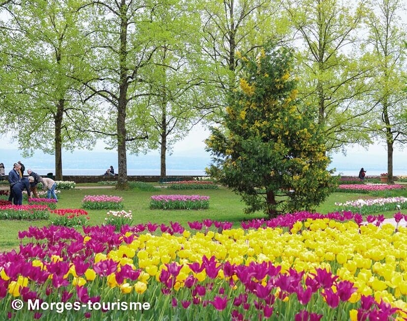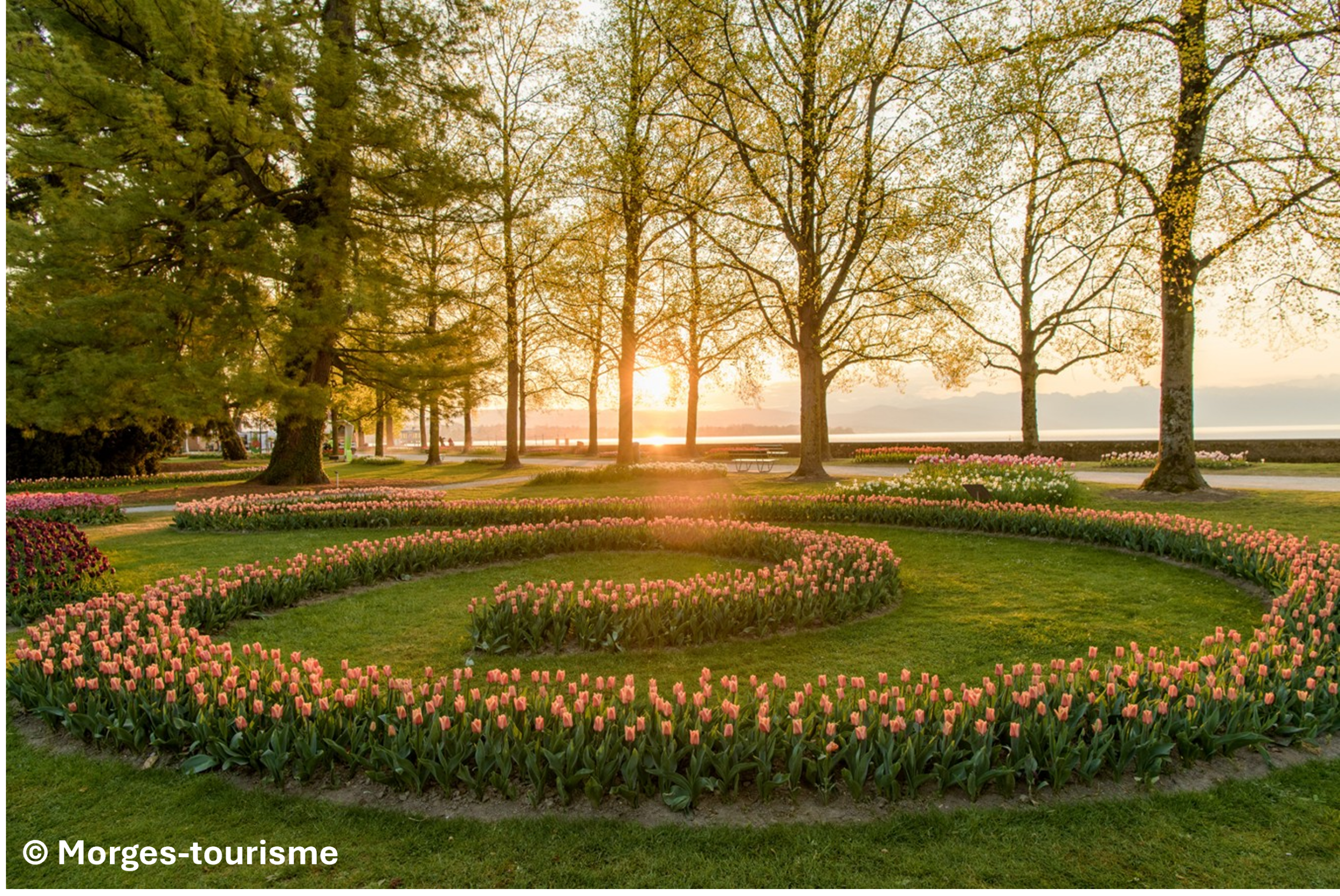 In Morges angekommen, erwartet uns ein feines Mittagessen in einem ausgewählten Restaurant. Danach bleibt genügend Zeit, durch den idyllischen Parc de l’Indépendance zu schlendern, in dem über 140’000 Tulpen in verschiedensten Formen, Farben und Sorten erblühen. Die eindrucksvolle Blütenpracht vor der Kulisse des Schlosses Morges und des Genfersees sorgt für unvergessliche Eindrücke.